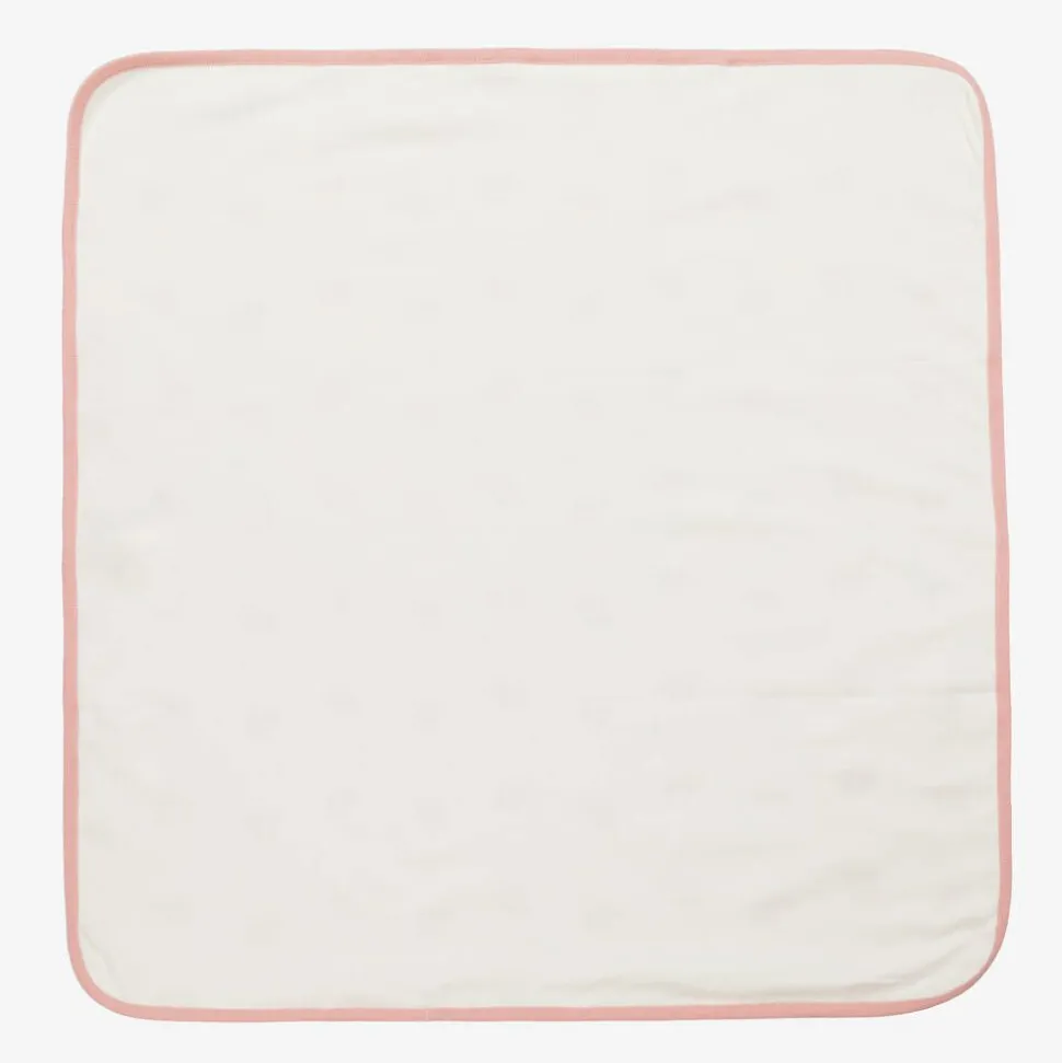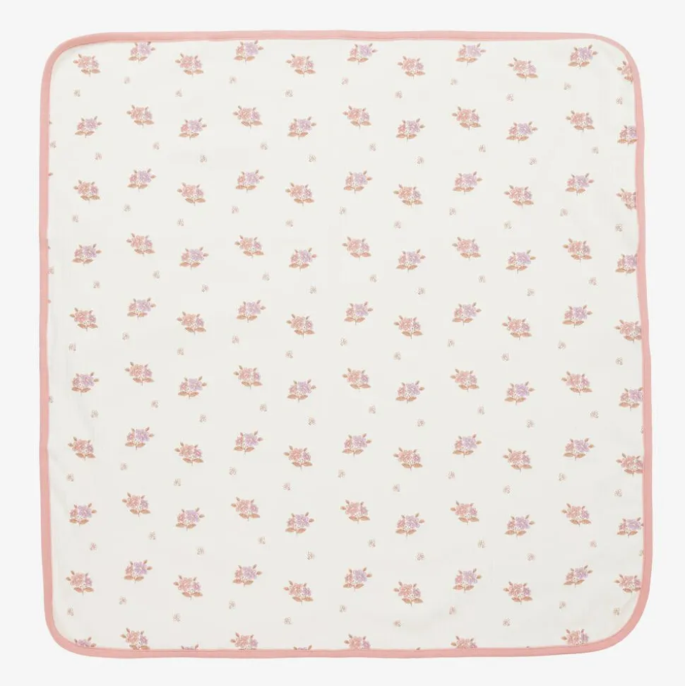 Pretty ivory blanket for baby girls by Kissy Love, printed with a sweet floral pattern. Gentle on delicate skin, it is made from a super soft and stretchy ribbed Pima cotton jersey with smooth jersey on the reverse side. A pink ribbed border adds a neat finish.