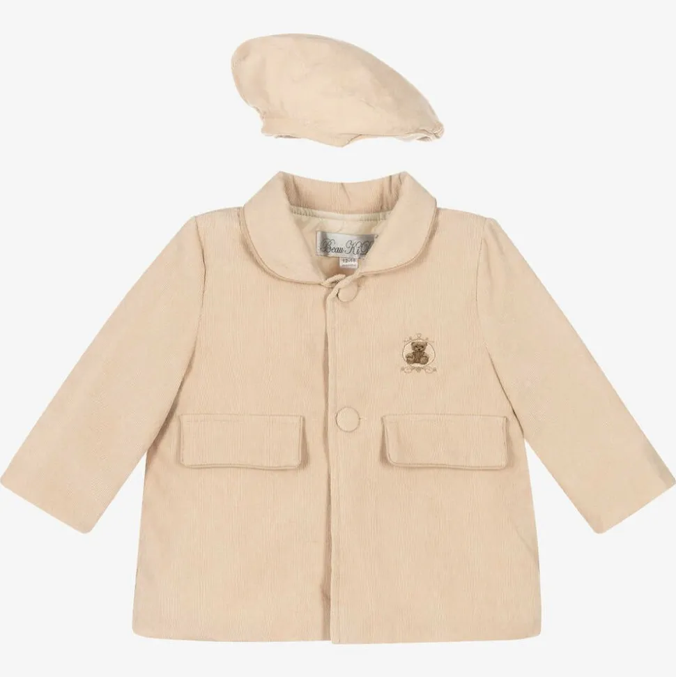 Beige Corduroy Coat & Hat Set