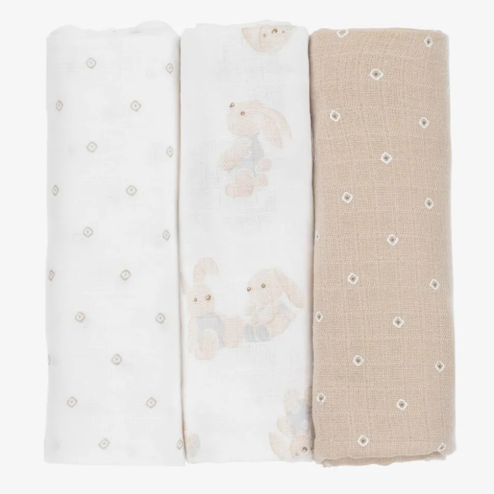 Beige Cotton Baby Muslins (3 Pack)