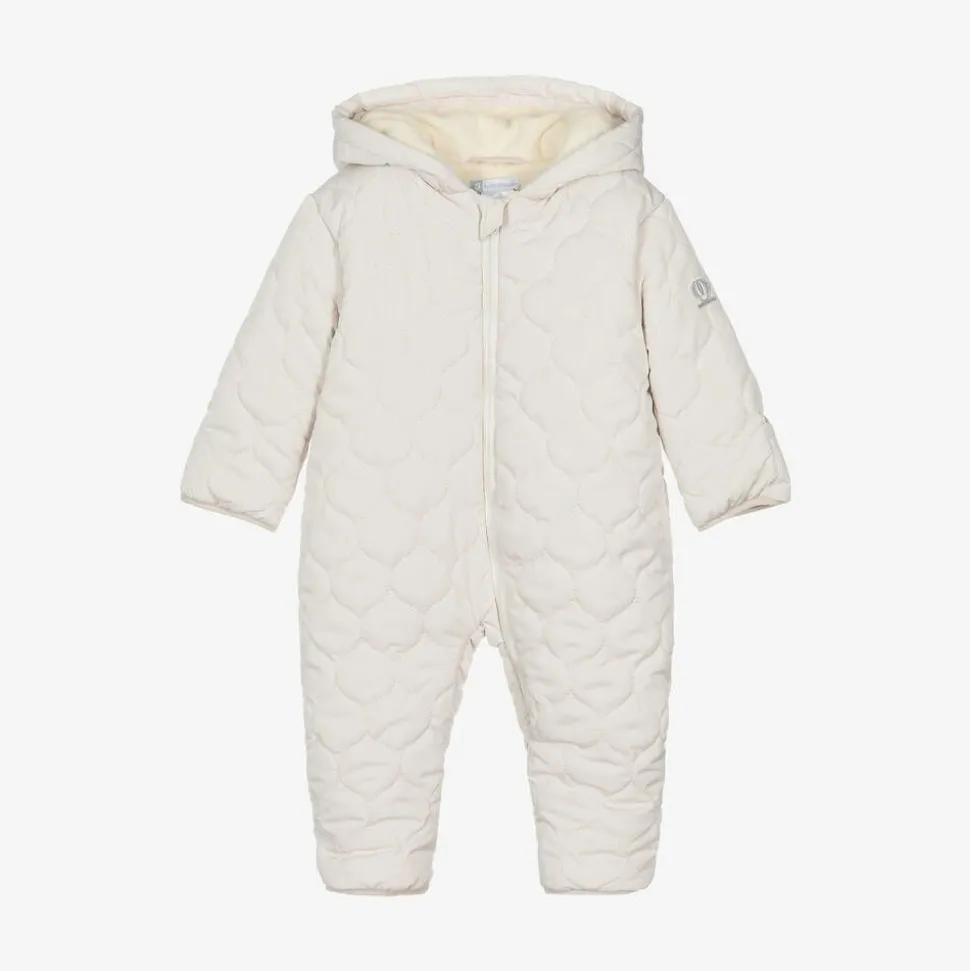 Beige Quilted Baby Snowsuit