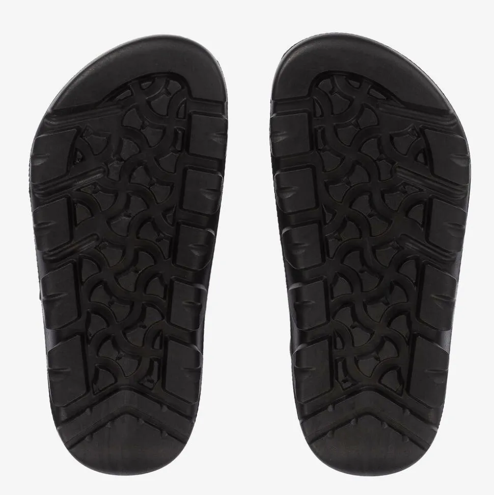 Black German-made sandals for boys and girls by Birkenstock. The straps are made from soft yet durable Birko-FlorĀ® faux leather with two branded buckle fastenings for an adjustable fit. The waterproof and contoured footbed comes with a toe guard for extra protection. Flexible and hard-wearing in any terrain, the chunky outsole features moulded deep tread for improved grip and a sporty look.