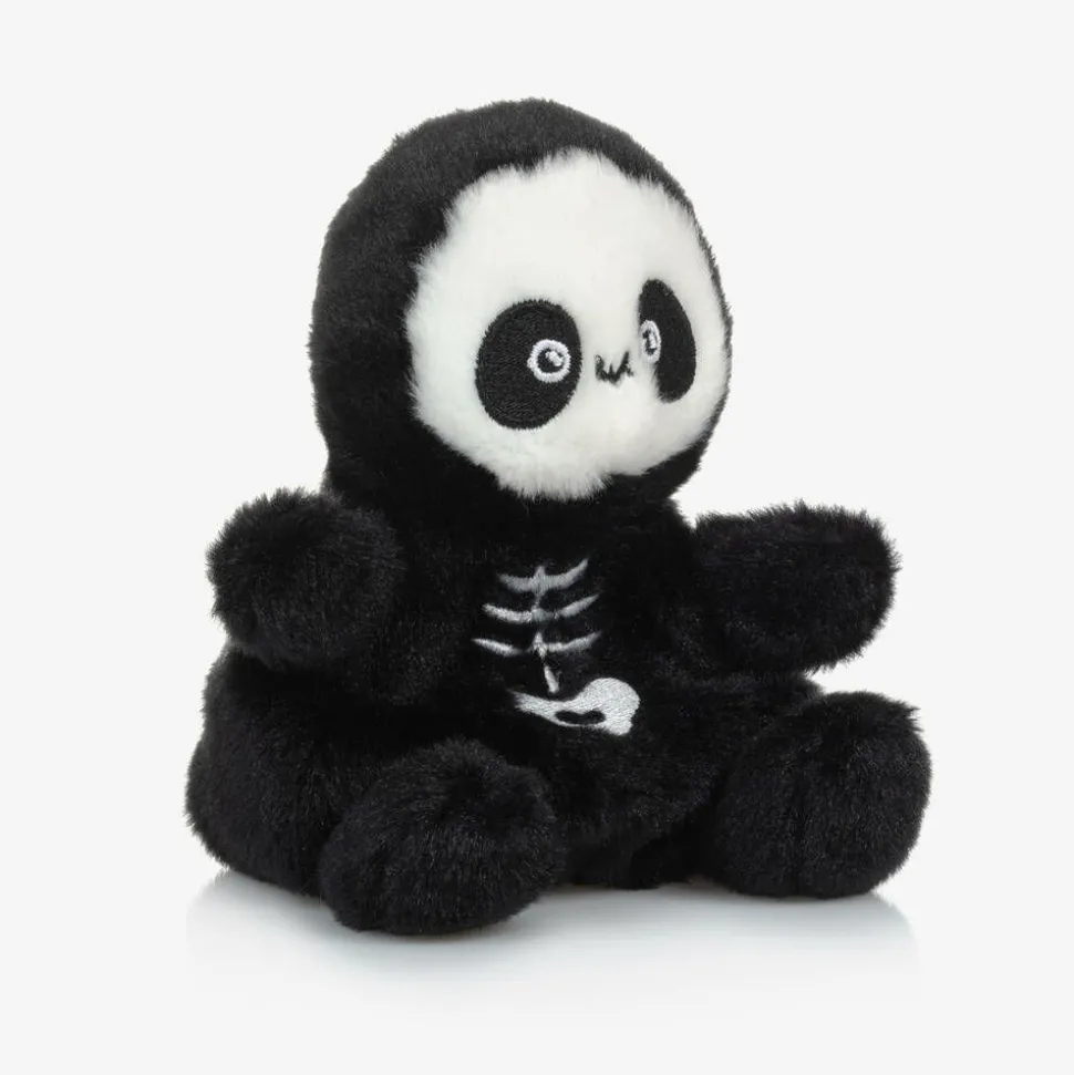 Black and white Skelly Skeleton soft toy for boys and girls by Aurora, part of the Palm Pal's Seasonal collection. Just right for spooky fun, this cute toy has a friendly face, embroidered detailing and little arms and legs. Handmade in super soft plush, it is softly padded with recycled fibres and pellets, making it easy to hold and cuddle.