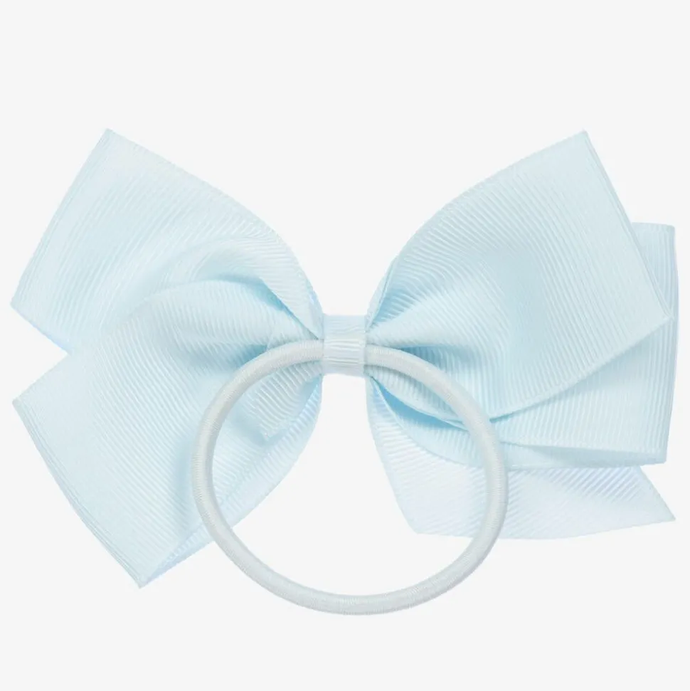 Pale blue hair elastic for girls from Peach Ribbons. Lovely to complete an outfit, this pretty accessory has a large handmade grosgrain ribbon bow detail.
