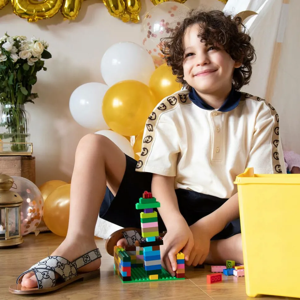 Boys smart navy blue cotton chino shorts by luxury brand, Gucci. Made in stretch gabardine, they fasten with a horn button and zip and have an adjustable waistband and side pockets, with pleats at the front and logo tag on the back.