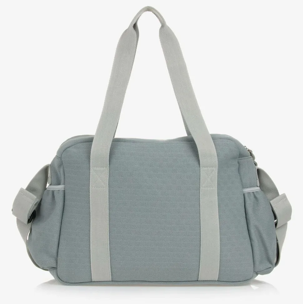 Practical slate blue changing bag by Pasito a Pasito Walking Mum, in a lovely soft mesh knit. It has a spacious, cotton lined main compartment with a front pocket, zip fastenings and two external side pockets. There are further pockets inside, including an insulated bottle pocket and a plastic zipped pocket handy for transporting wet clothes. The woven shoulder strap is adjustable and attached, and comes with two velcro buggy straps. Eco friendly, the durable fabric is made from post-consumer materials, free from harmful azo dyes and noxious substances. It comes with a lightly padded, easy-wipe changing mat.