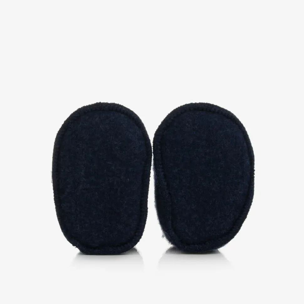 A lovely pair of navy blue thermal booties for baby boys and girls by Joha. They are knitted in luxuriously soft and fleecy Merino wool with ribbed ankles to keep the feet cosy. An adjustable toggle drawstring fastens on the front for a comfortable fit.