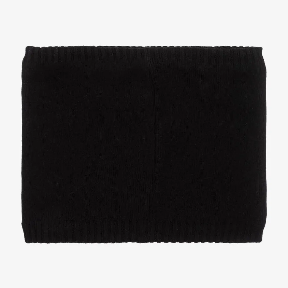 Cosy black snood for boys by BOSS, knitted in a soft wool blend. Lined in warm fleece, this cold-weather accessory has a rubberised badge on the front for a recognisable designer look.
