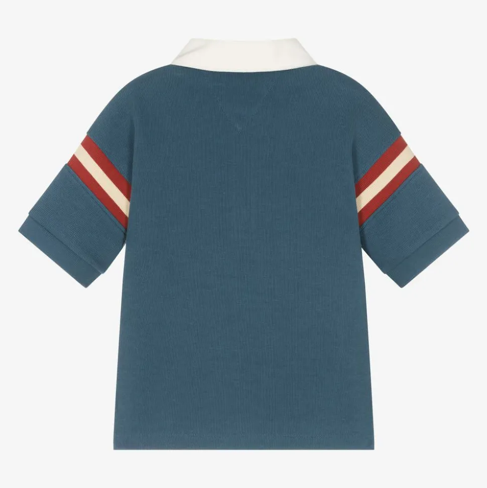Boys Blue Cotton Varsity Logo Rugby Shirt