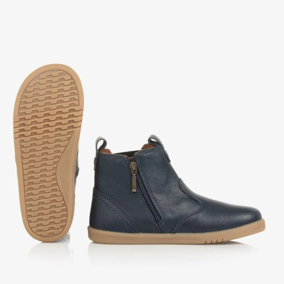 From Bobux IWalk, podiatrist-approved blue leather ankle boots for little boys. These matte Chelsea boots fasten with a side zip for easy dressing and have non-slip rubber soles for good grip.