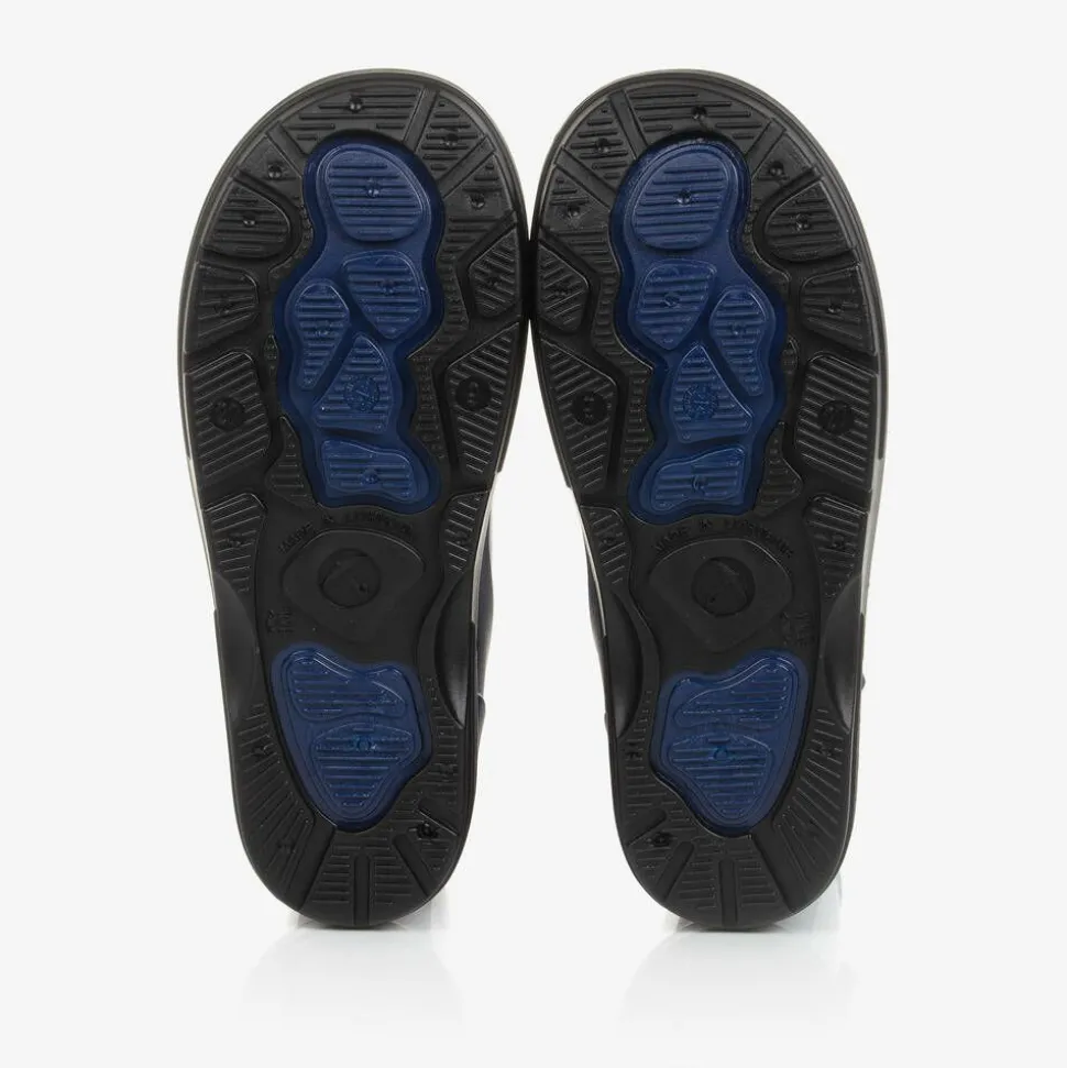 Blue rain boots for boys by BOSS, made from flexible rubber with glossy side panels. Ideal for wet and rainy days, they have the brand's logo in white on one side, with signature stripe detailing below for instant designer appeal. A soft textile lining and lightly cushioned insole provides comfort and the non-slip rubber outer sole improves grip on slippery surfaces.
