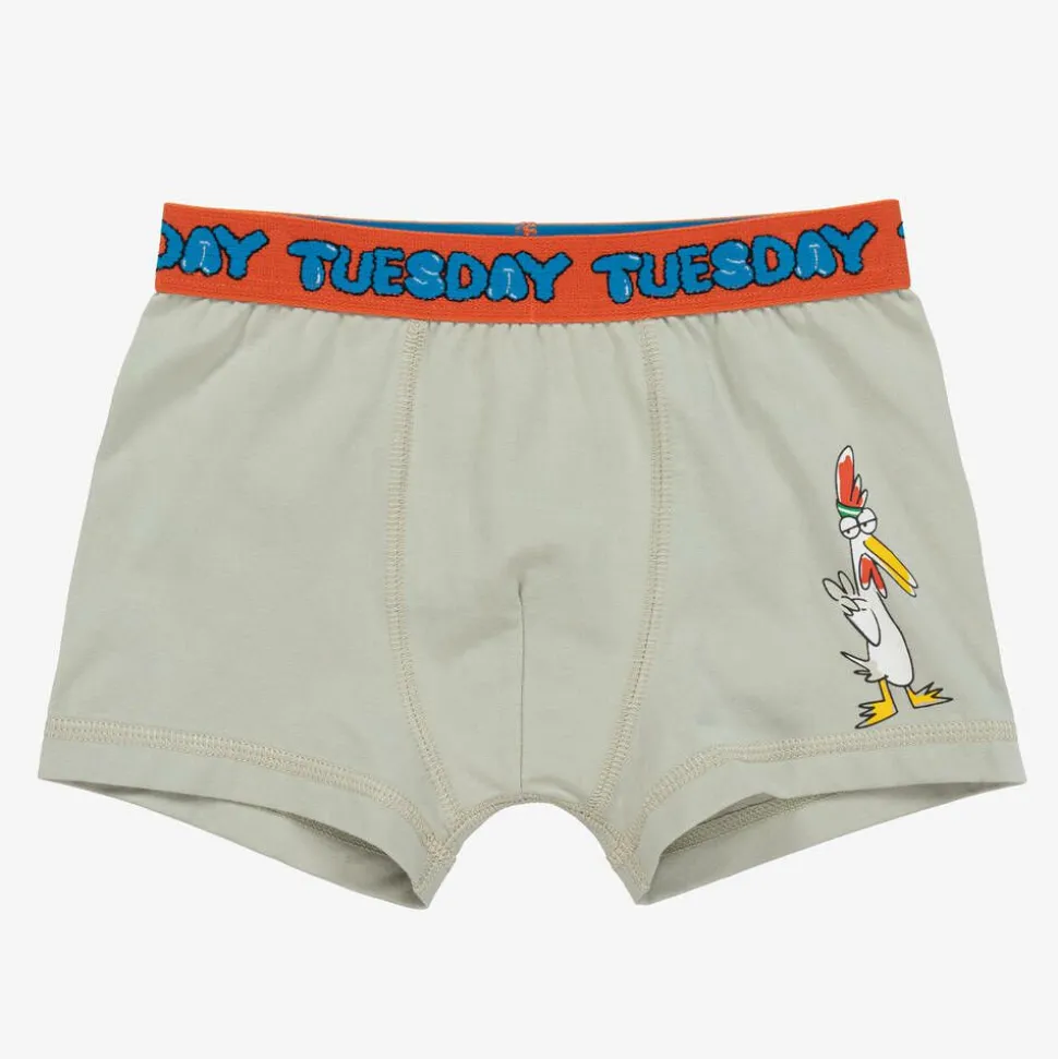 In shades of green, grey, and blue, this useful pack of seven boxer shorts for boys are by Stella McCartney Kids. Presented in a lovely gift box, they are each printed with weight-lifting animals in a cool cartoon style. Made from soft cotton jersey, they have elasticated jacquard waistbands featuring the days of the week for added fun. The Stella McCartney fit can be quite small so choose a size up if you want room to grow.