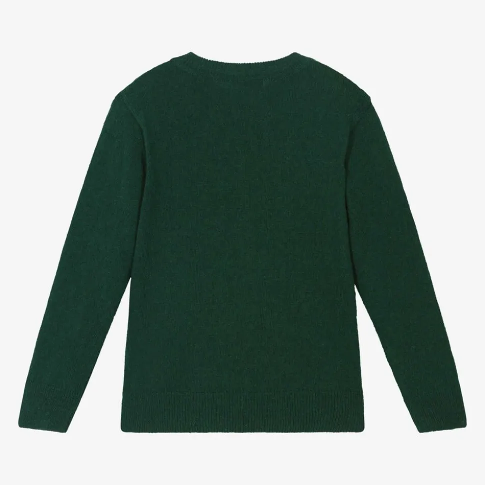 Timeless green cable knit sweater for boys by Dr. Kid, made in a soft wool blend. Great for layering and keeping your child warm, it also has stretchy ribbed trims for comfort.