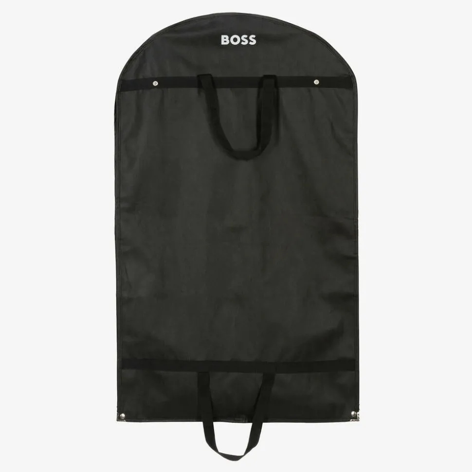 A smart navy blue suit for boys designed by BOSS. This two-piece suit is impeccably tailored for a formal occasion in a viscose blend twill for comfortable wear. The classic single-breasted blazer has notch lapels, three pockets and a single vent on the back. It has a silky lining and an inner chest pocket for carrying small belongings. The matching trousers have slanted front pockets and a buttoned back pocket. There are belt loops on the waistband and a button and zip fastening on the front.