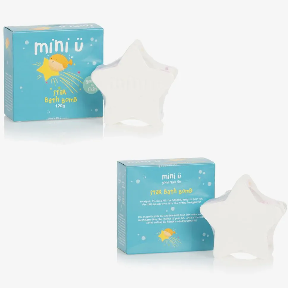 A fun, star-themed superhero gift hamper for boys by Childrensalon Hampers, comprising a cape, a mask, a soft star toy and a bath bomb. So much fun for imaginative play, the Souza cape is made in black velour with colourful star and lightning bolt appliqués, a shiny silver lurex lining and easy velcro fastening. The metallic gold mask has soft felt on the reverse and an elastic cord to secure it. The shooting star soft plush toy is part of Aurora's Palm Pals collection and is embroidered with a happy face. A fizzy, sparkly bath bomb with added shea butter completes the set.