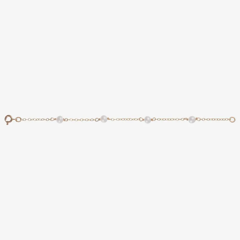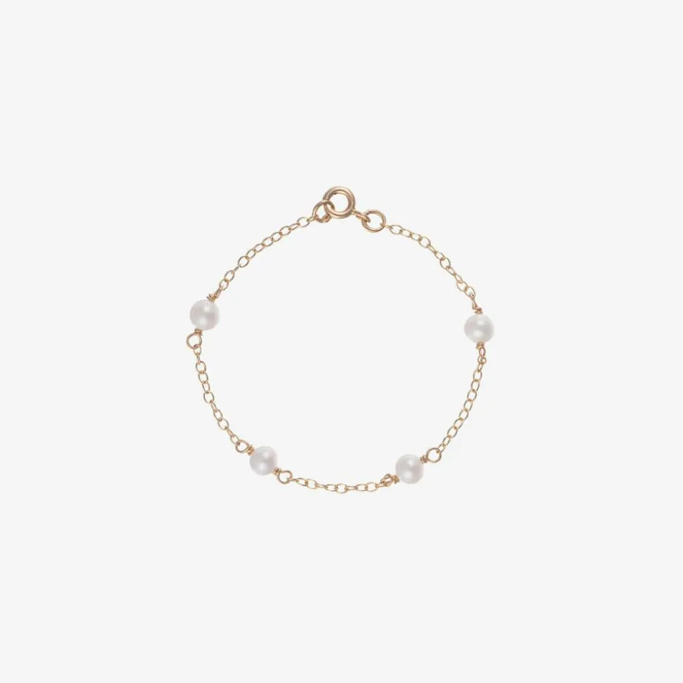 Timelessly elegant gold bracelet for girls from British label Raw Pearls, fastening with a metal clasp. The chain is made in luxurious 9-karat gold, with natural cultured river pearls. A thoughtful gift to be worn for years to come, it is presented in a soft velvet storage pouch.