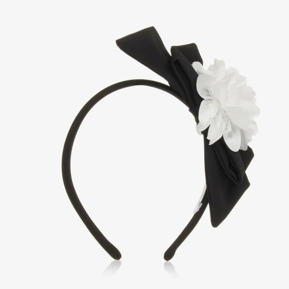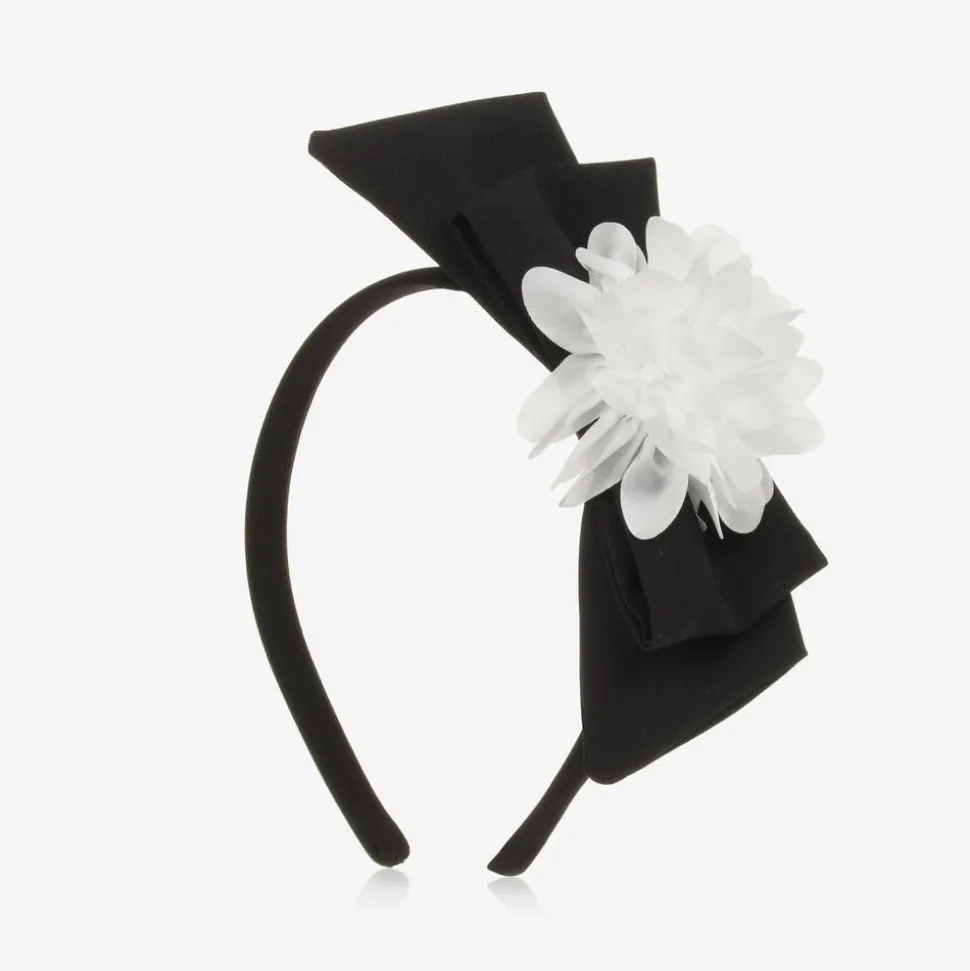 Girls Black Bow & White Floral Hairband