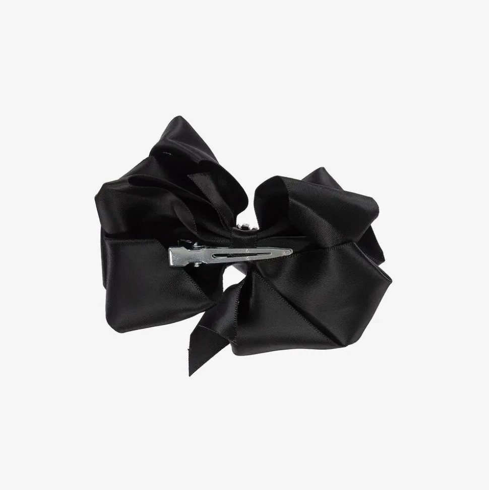Girls Black Satin Bow Hair Clip (10cm)