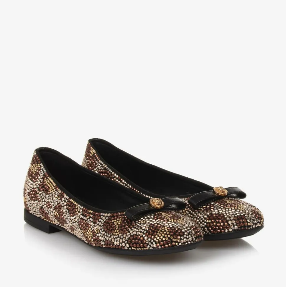 Girls Gold & Brown Leopard Stud Pumps