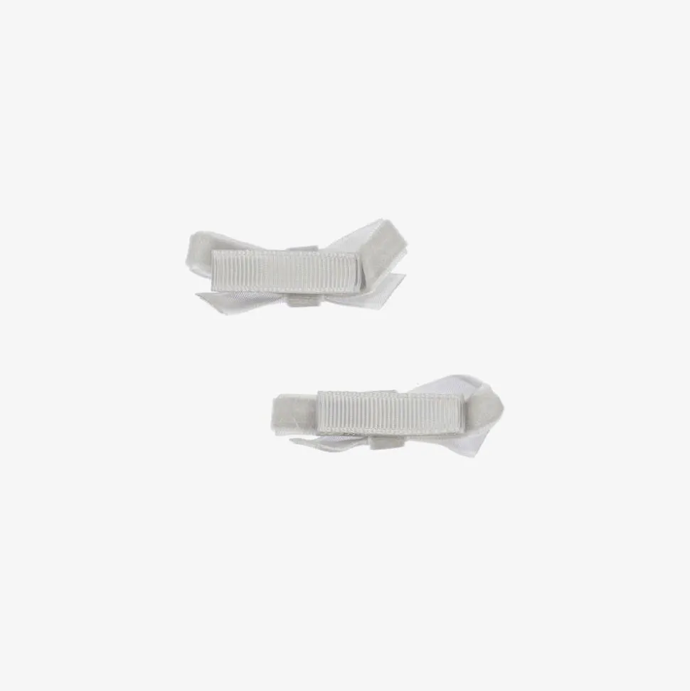 Girls Grey Velvet Bow Hair Clips (2 Pack)