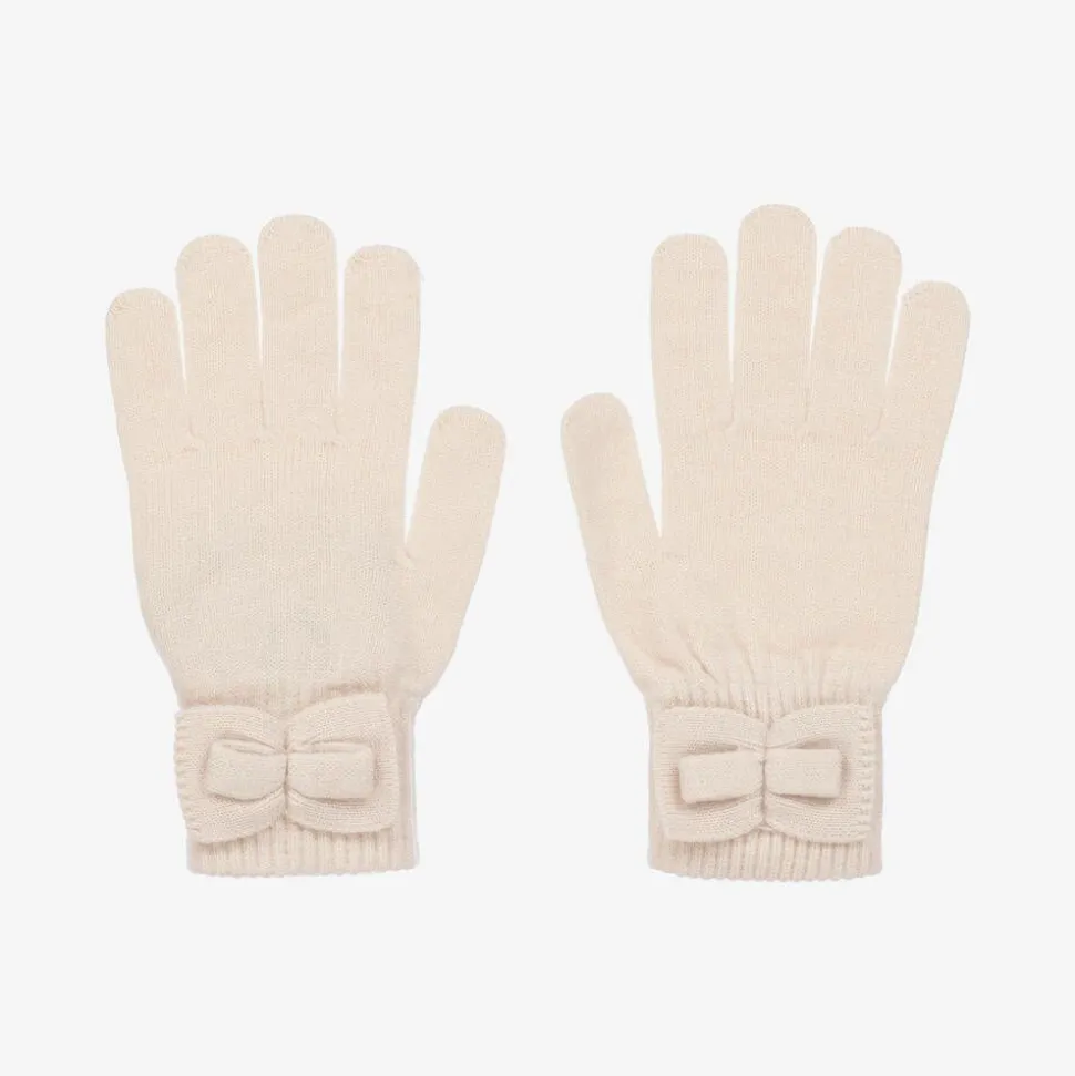 Girls Ivory Knitted Bow Gloves