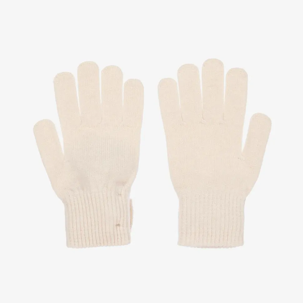Ivory gloves for girls by Mayoral, knitted in a soft viscose blend. These gently ribbed gloves, decorated with a pretty bow on the cuff, keep hands warm and cosy right through the colder months.
