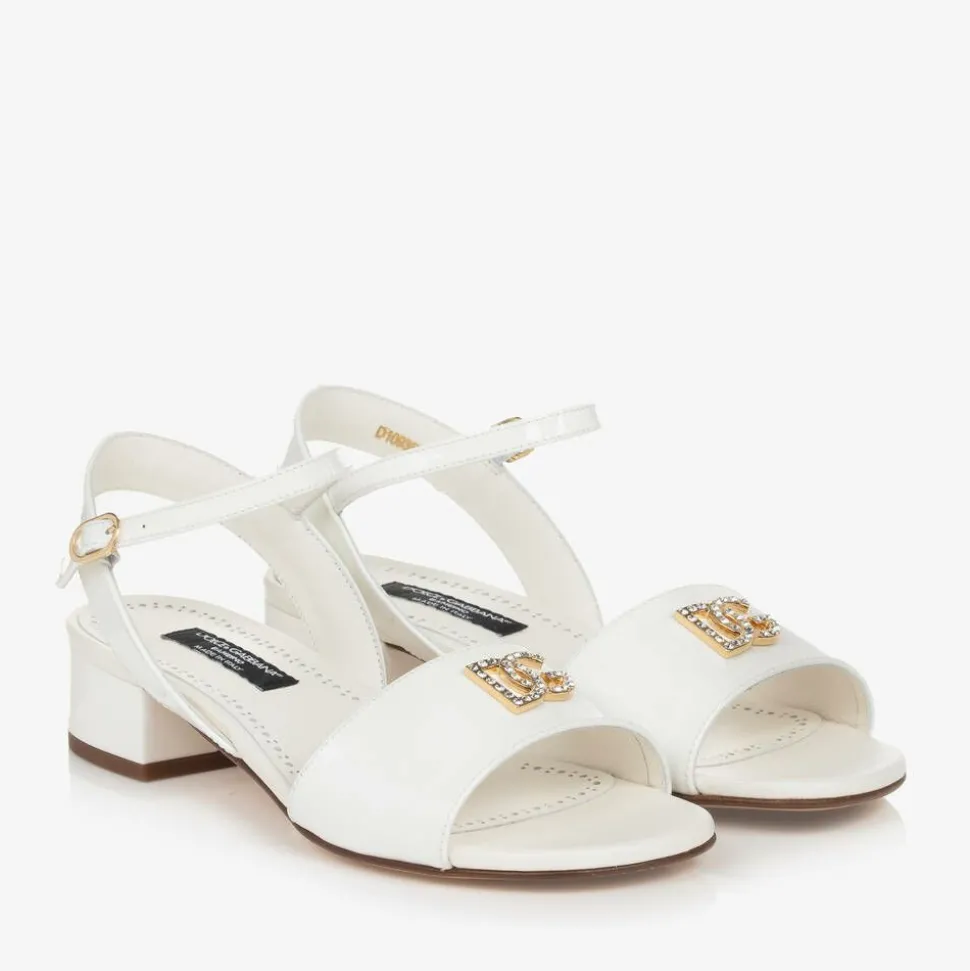 Girls Ivory Leather DG Heeled Sandals
