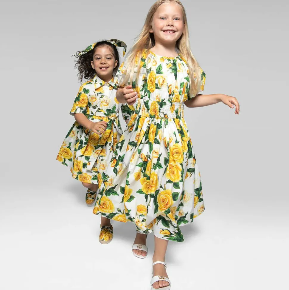 Elegant and timeless, these ivory heeled sandals for girls are by luxury brand Dolce & Gabbana. Made from glossy patent leather, the strap across the toes is embellished with an iconic gold and diamanté crossover DG logo for a sparkly designer touch. Classic and feminine, they have pretty perforated detailing on the soft leather insole and fasten with a gold buckle on the ankle. A slim brown non-slip rubber and leather outsole complete the elevated look.