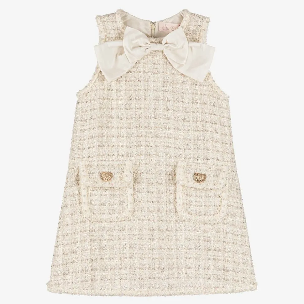 Girls Ivory Sparkly Tweed Dress