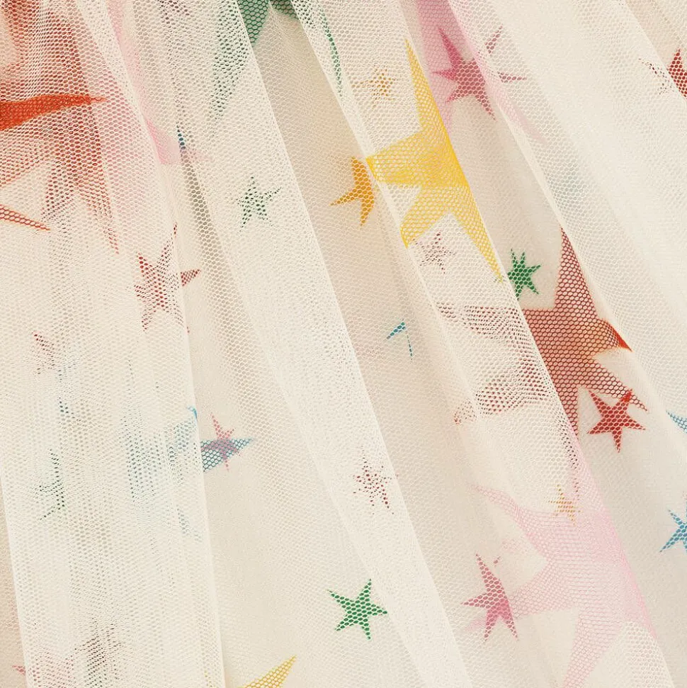 Pretty ivory skirt for girls by Stella McCartney Kids, made in soft tulle with a colourful star print. Ideal for parties and casualwear alike, this easy style has an elasticated waistband and a soft, lightweight lining patterned with stars for a lovely finish. The Stella McCartney fit can be quite small so choose a size up if you want room to grow.