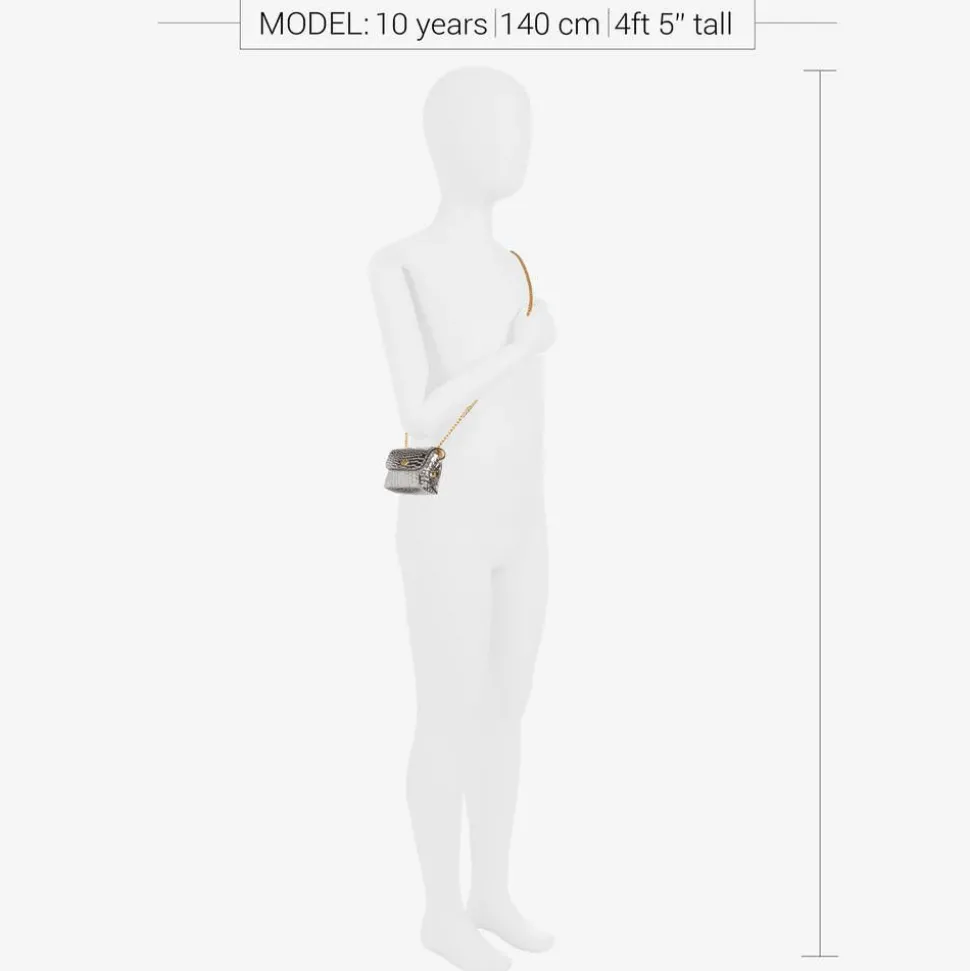 A metallic silver mini shoulder bag for girls by Italian brand Zaccone, made in faux leather. Adding statement to their outfit, this striking bag has a crocodile effect design with a gold chain strap. The main compartment is lined in leather and fastens neatly using a popper.