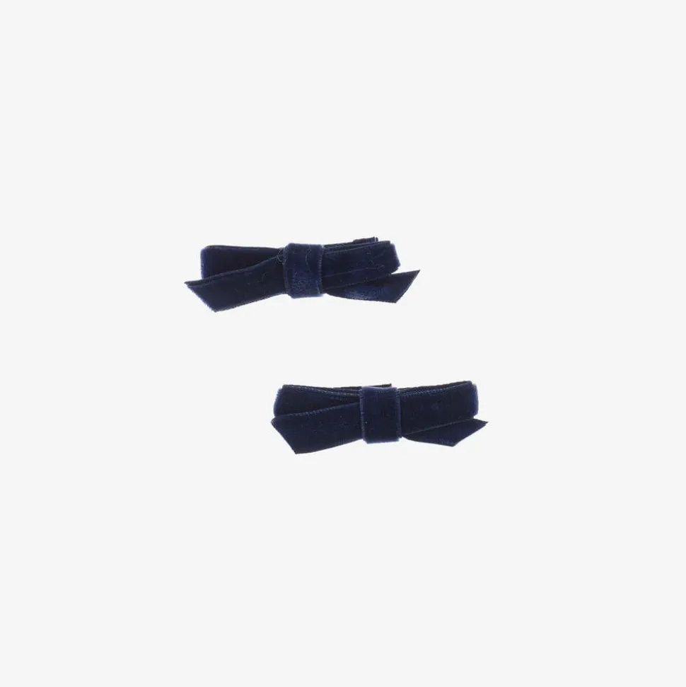 Girls Navy Blue Velvet Bow Hair Clips (2 Pack)