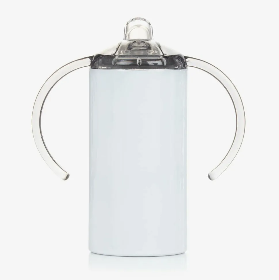 Cute white 400ml sippy cup for girls by Treat Republic, printed with a sweet fairy and moon on the front. Your little girl's name can be printed underneath, adding a personalised touch to this lunchtime essential. Made in stainless steel, the cup has a useful plastic screw lid with easy-to-grip handles on the side.