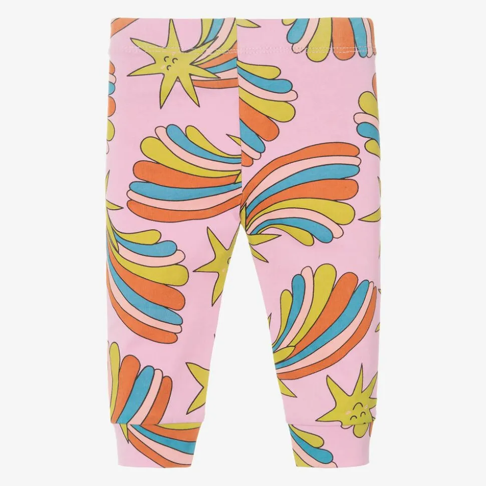 Pink leggings for younger girls by Stella McCartney Kids, made in soft organic cotton jersey. Both comfortable and casual, they are patterned with colourful shooting star characters for a playful look, with a gently elasticated waistband ensuring a good fit. The Stella McCartney fit can be quite small so choose a size up if you want room to grow.
