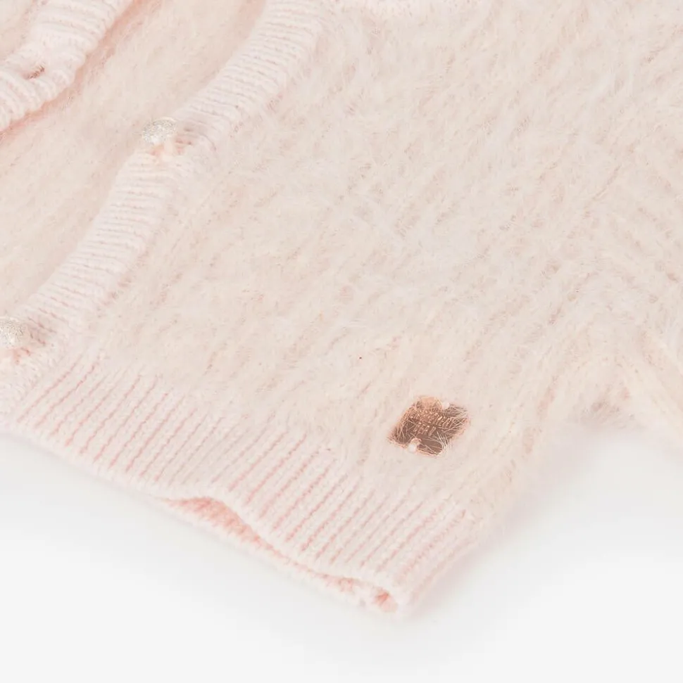 Girls Pink Fluffy Knit Cardigan