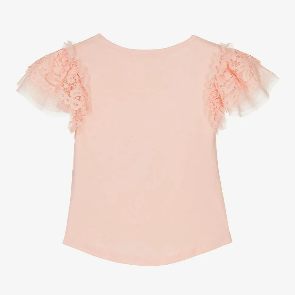 Girls Pink Lace Sleeve Top