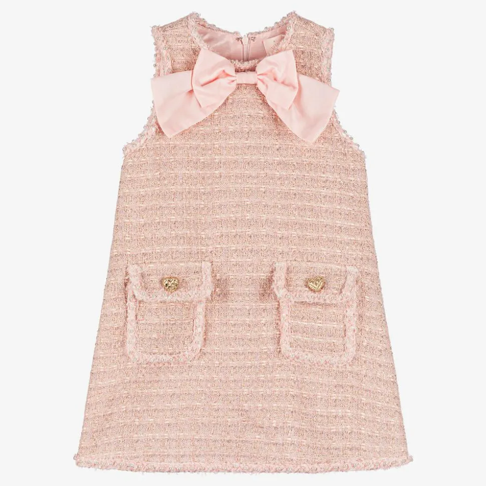 Girls Pink Sparkly Tweed Dress