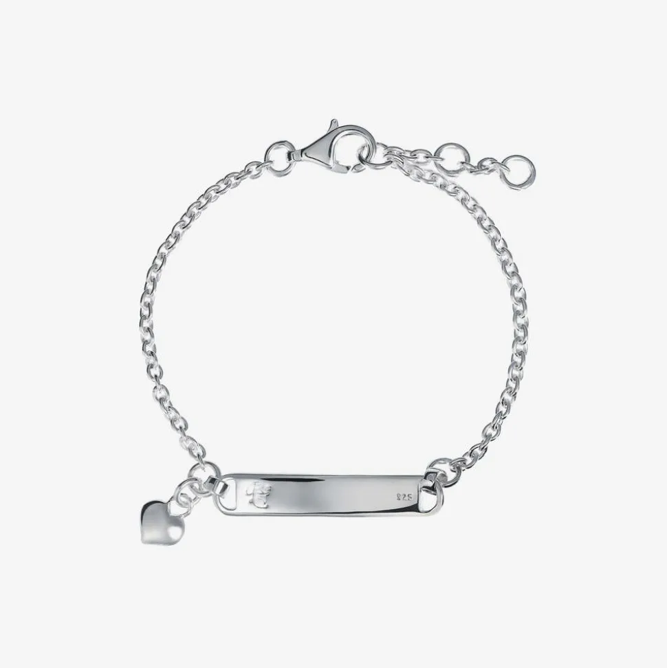 A beautiful sterling silver ID bracelet for girls by Little Star, with a dainty diamond heart-shaped charm. Beautifully engraved for that personal touch, it is presented in a fabric pouch, box and gift bag and makes a lovely keepsake for a special little one. The delicate chain has a clasp fastening and can be worn at different lengths as she grows.