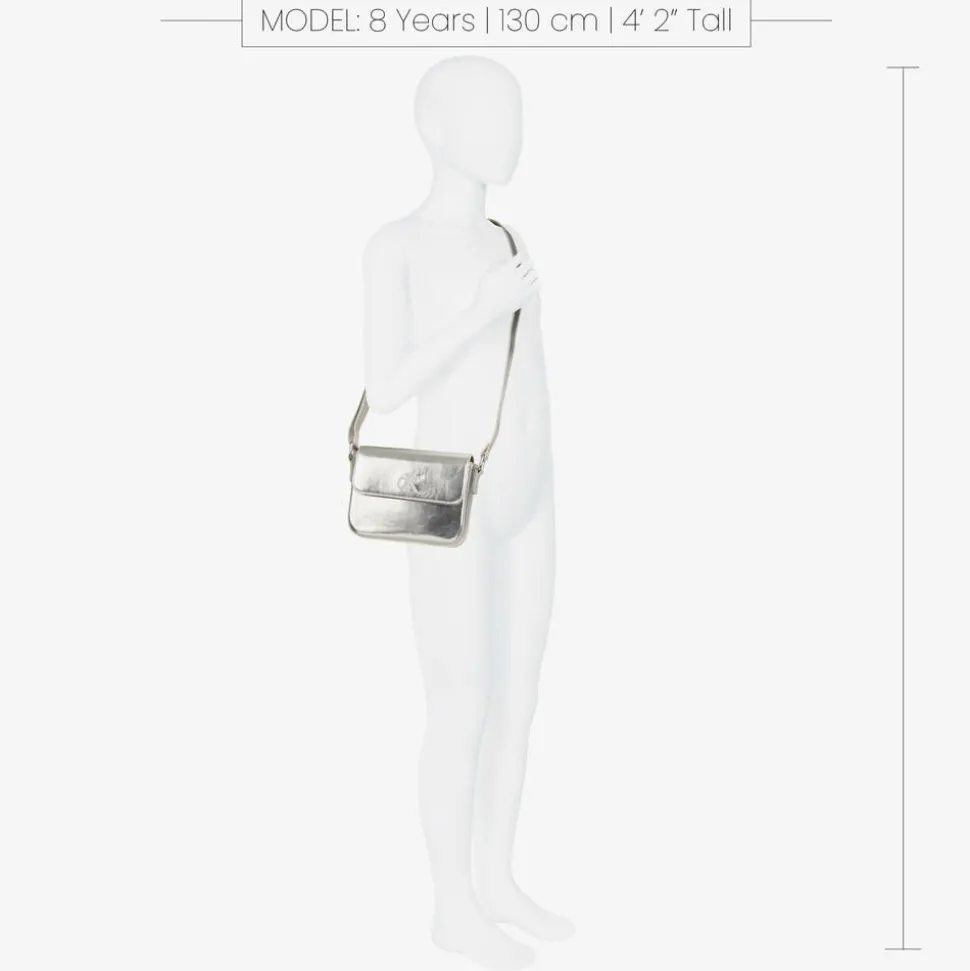 Timelessly stylish silver faux leather handbag for girls from Calvin Klein. A tonal embroidered logo on the front and silver metal work give a sophisticated finish.