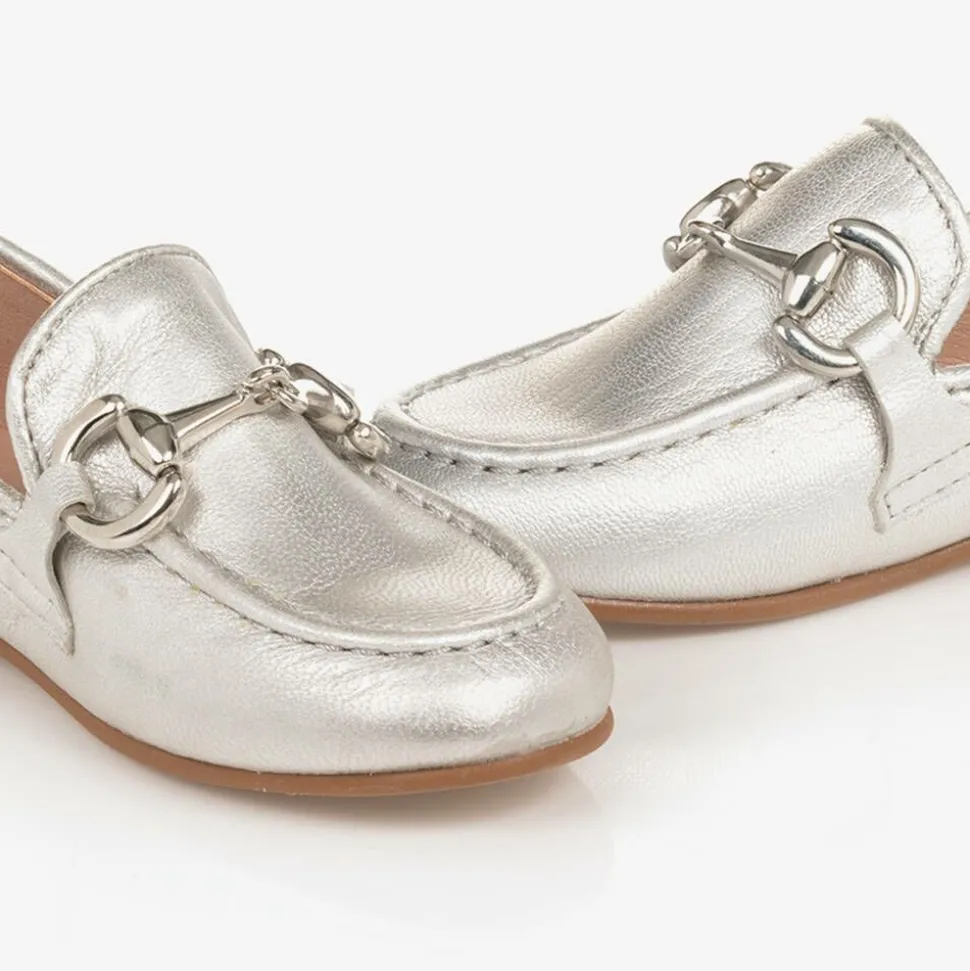 Girls Silver Leather Loafers