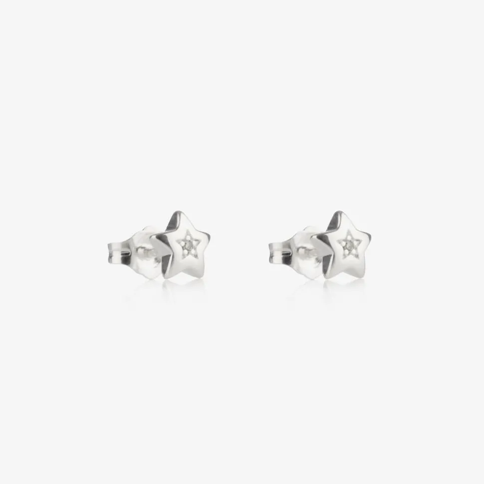 Sterling silver earrings for girls by British brand Little Star, set with small diamond stars. A style for every occasion, these dainty star-shaped studs will add a lovely touch to any look. The butterfly backs ensure a secure fit. For birthdays and special celebrations, these sparkly earrings make a precious gift. They are beautifully presented in a drawstring pouch and box and come with a Little Star jewellery gift box.