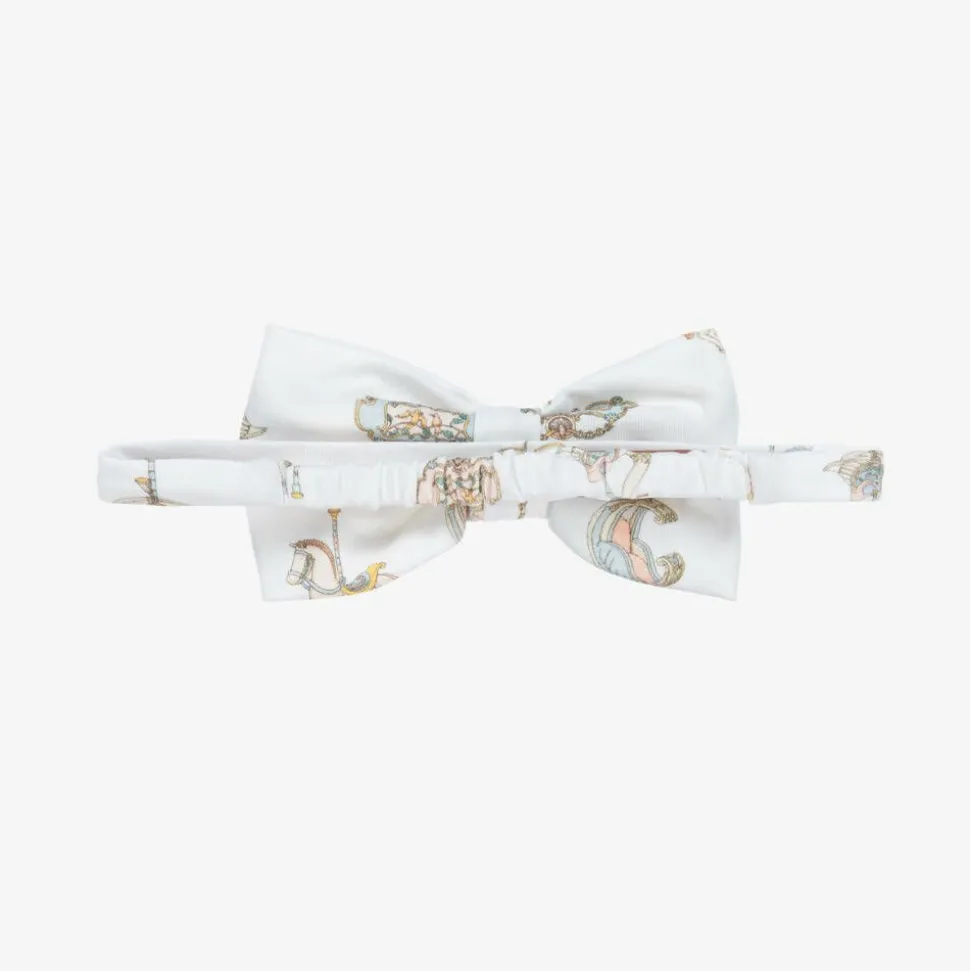 Girls White Carousel Print Cotton Headband