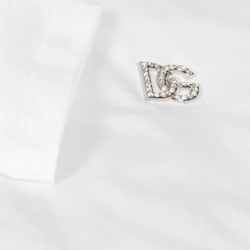 White T-shirt for girls by Dolce & Gabbana, made in soft cotton. Styled in an oversized fit, this dropped-shoulder tee has a silver-hued DG motif on the front, sparkling with real crystals for those extra luxury details.