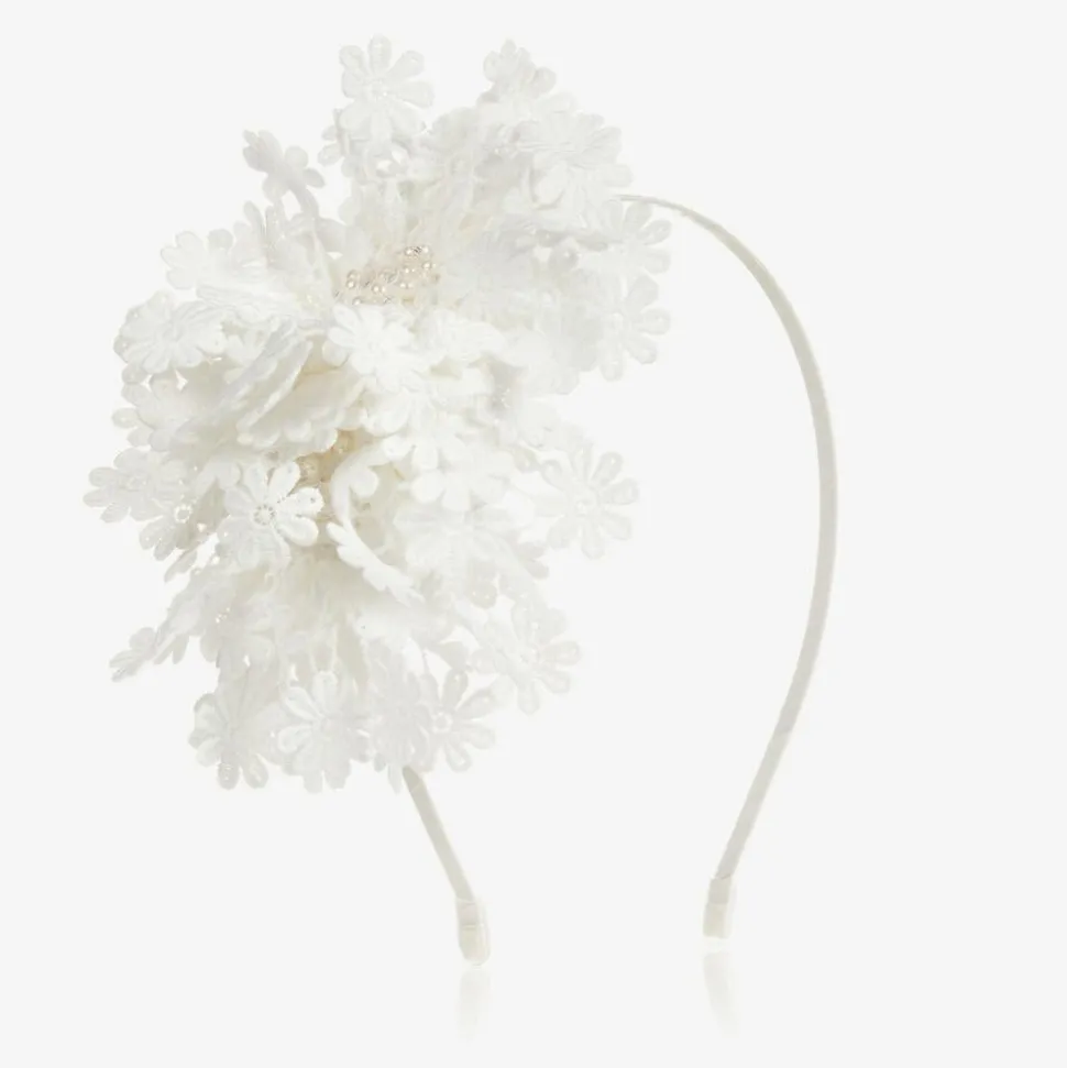 Girls White Flowers Hairband