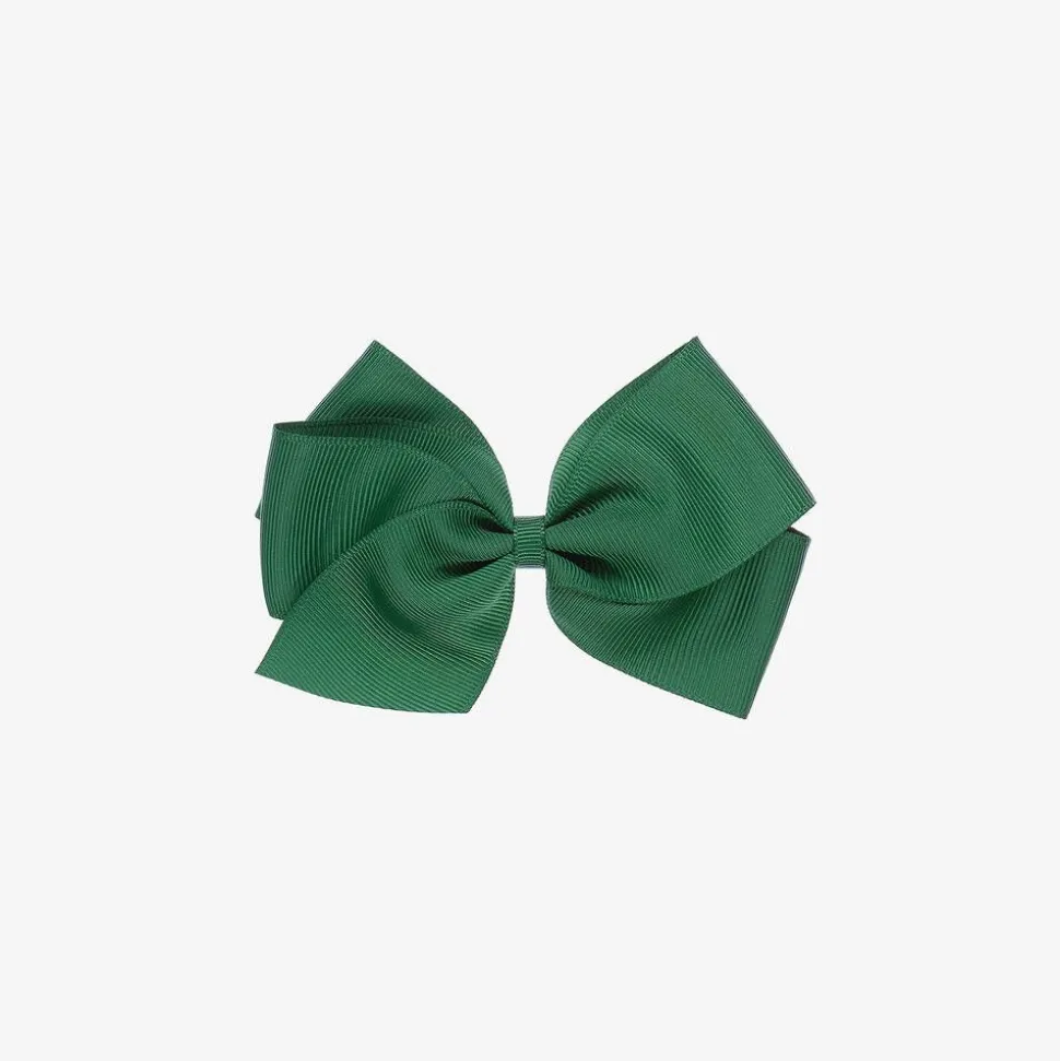 Girls lovely dark green bow hair clip by Peach Ribbons, handmade from grosgrain ribbon and set on a metal clip.