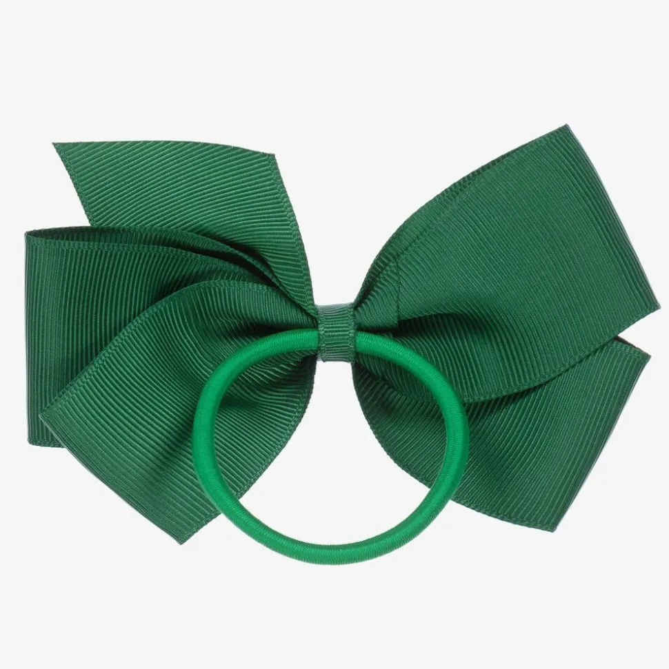 Dark green hair elastic for girls from Peach Ribbons. Lovely to complete an outfit, this pretty accessory has a large handmade grosgrain ribbon bow detail.