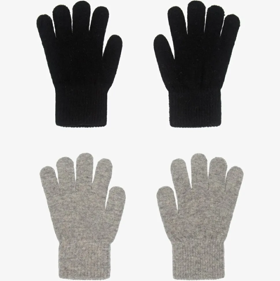 Pack of two, grey and black gloves for boys and girls by Danish brand CeLaVi. Knitted in a super soft wool blend, they will keep little hands warm and cosy.
