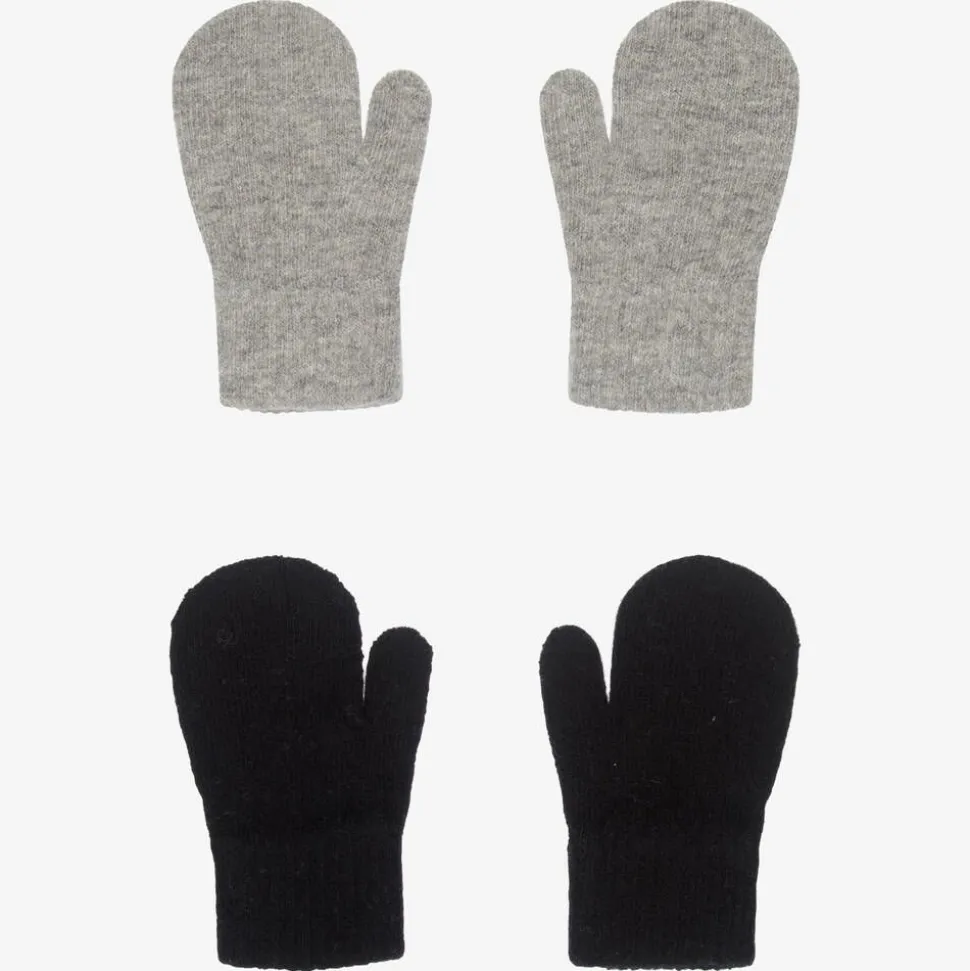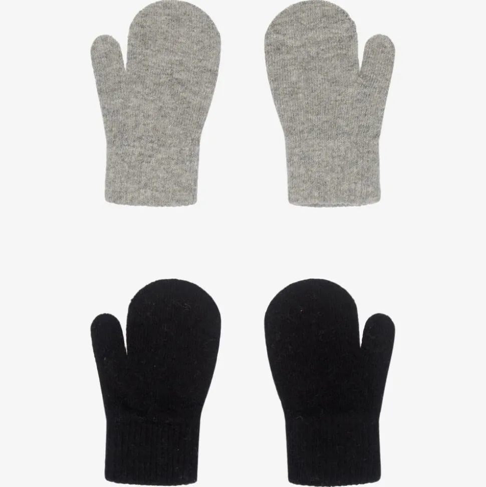 Pack of two, grey and black mittens for boys and girls by CeLaVi. Knitted in a soft wool blend, they will keep little hands cosy and warm.