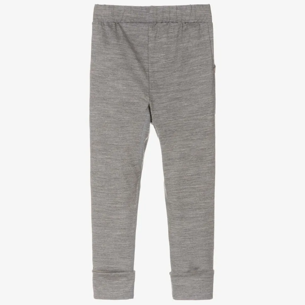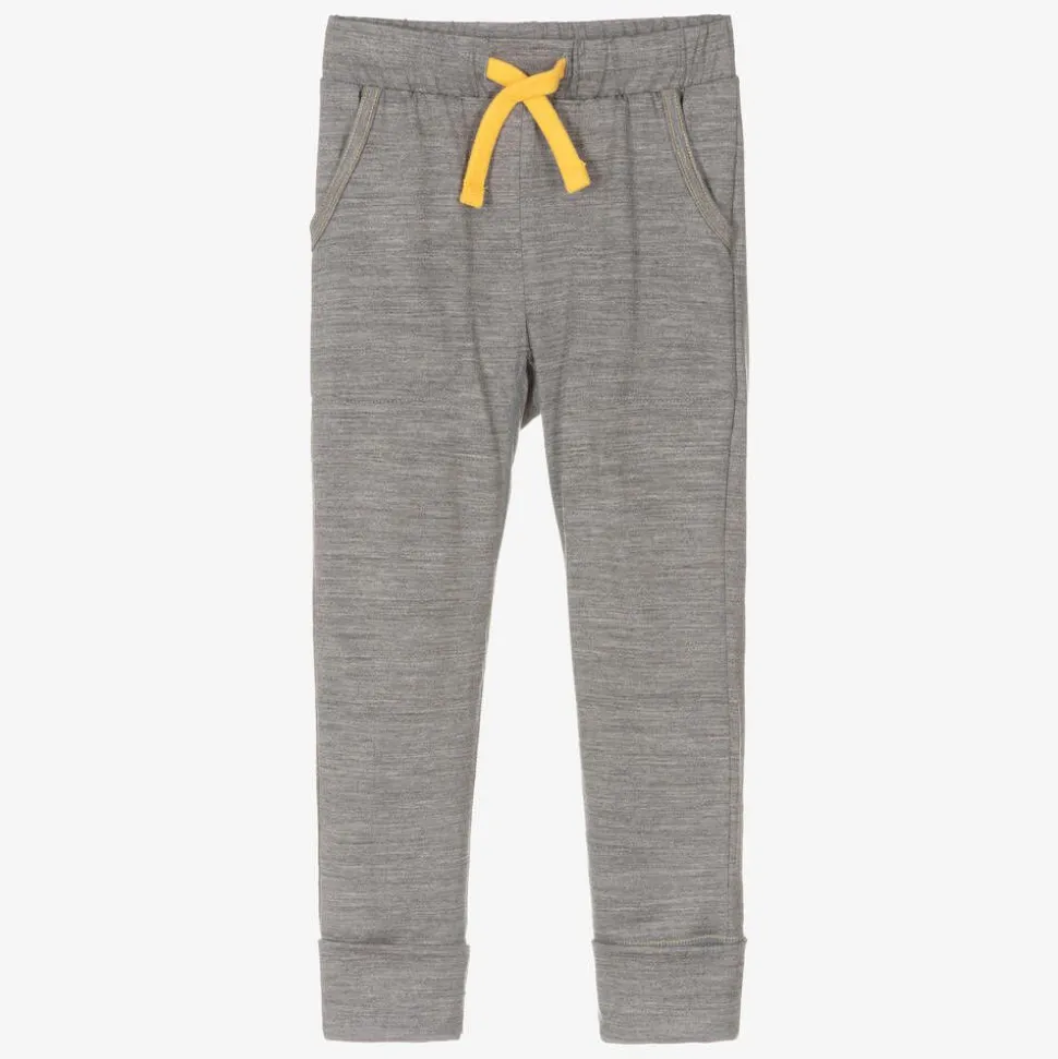 Grey marl joggers for boys and girls by Smalls Merino, beautifully made in Portugal. Soft and highly breathable, these slim-leg joggers are made in sustainable ZQ Merino wool with thermal control. Ideal for those with skin sensitivities, these versatile trousers can be worn when lounging or as a suitable base layer in colder temperatures. They have useful front pockets, a stretchy, drawstring waist and foldable cuffs that can be turned down when little ones grow. Yellow topstitching and coordinating drawstring ties add a fun pop of colour.