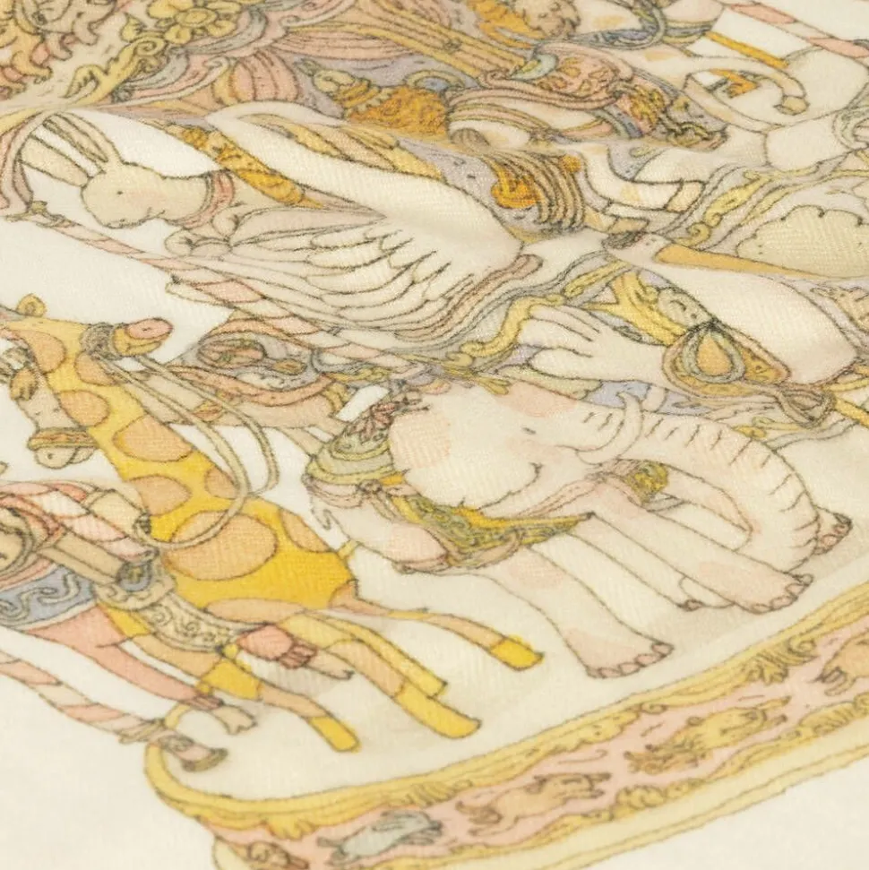 Beautiful ivory blanket for baby girls by Atelier Choux Paris, knitted in a luxurious cashmere and wool blend. Super soft and lightweight, it has a sweet animal carousel on the front with the signature brand name below. Gentle on the skin, this versatile nursery accessory can be used all year round as a cosy cot cover for baby, or when out and about in the car seat and stroller. It is presented in a gift box and can be kept as a lovely keepsake.
