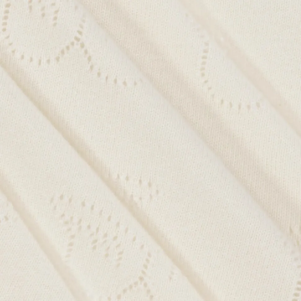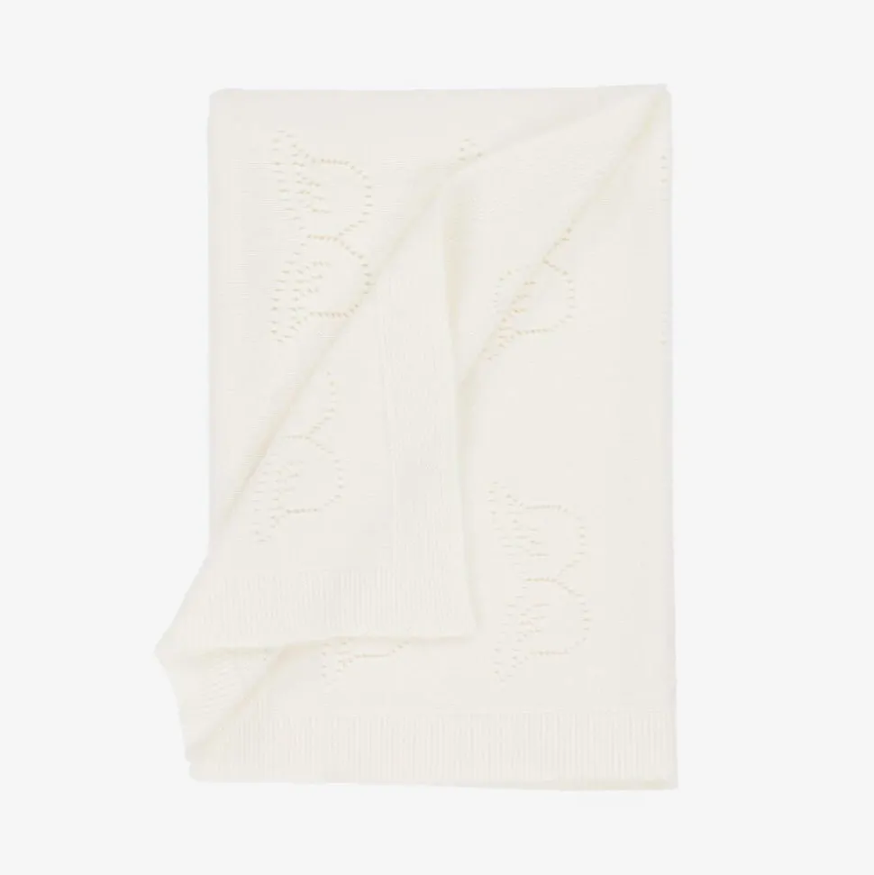 A lovely ivory blanket for baby boys and girls by Marie-Chantal. Knitted in luxuriously soft cashmere, it features the brand's signature Angel Wings in a delicate pointelle pattern. Useful in the car seat or stroller, this beautiful blanket also makes an attractive nursey accessory.